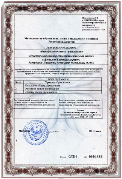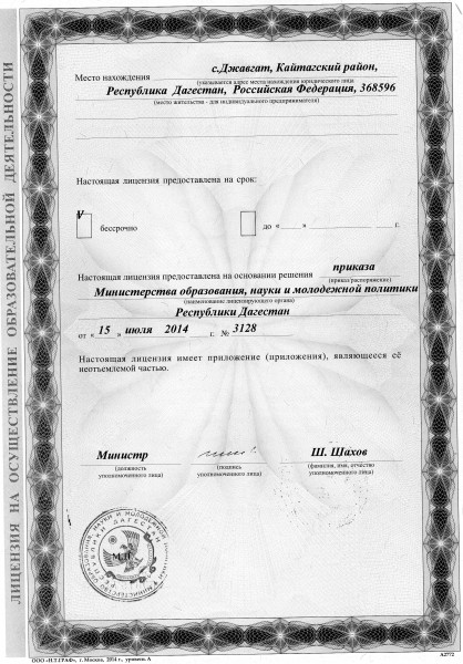 | Адрес местонахождения образовательной организации* | 368596, Республика Дагестан, Кайтагский район, с. Джавгат |